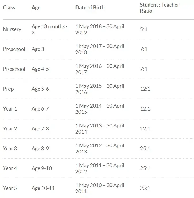 澳大利亚国际学校,学生必须在4月30日之前年满6 - 7岁才能进入小学一年级。