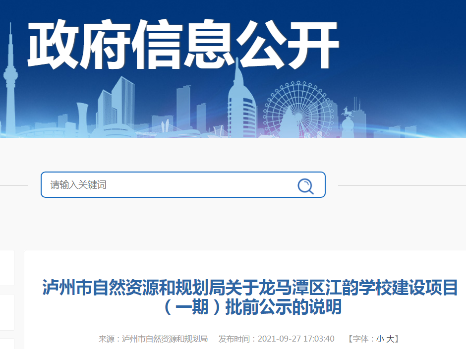 近日,泸州市自然资源和规划局发布了《关于龙马潭区江韵学校建设项目(一期)批前公示的说明》。大家翘首以盼的江韵学校,终于有了进展。