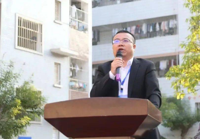 学校校长廖相鹏宣布2022年学生篮球比赛开幕