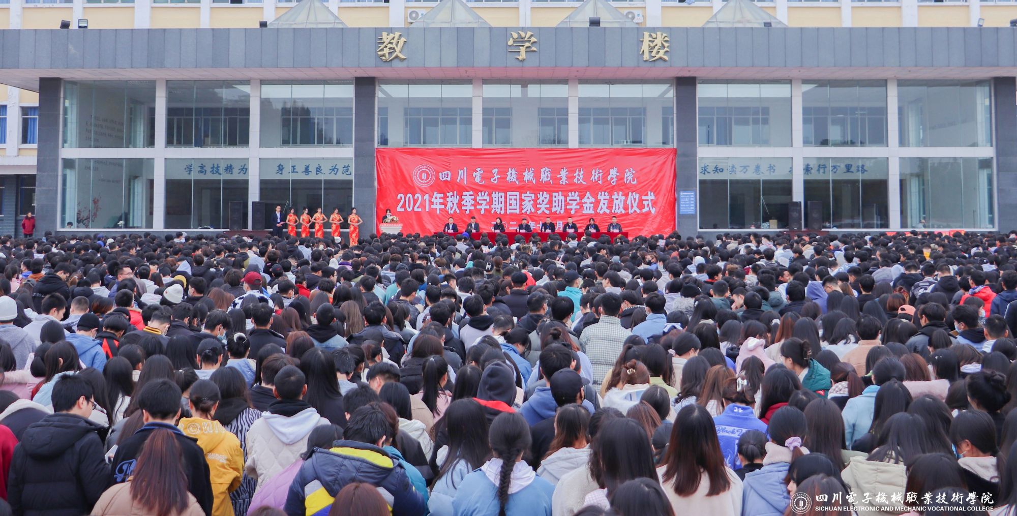12月13日,四川电子机械职业技术学校院举行了2021年秋季学期国家奖助学金发放仪式。学校新任党委书记吴明军出席并讲话,学校党委委员、副院长黄继春出席。