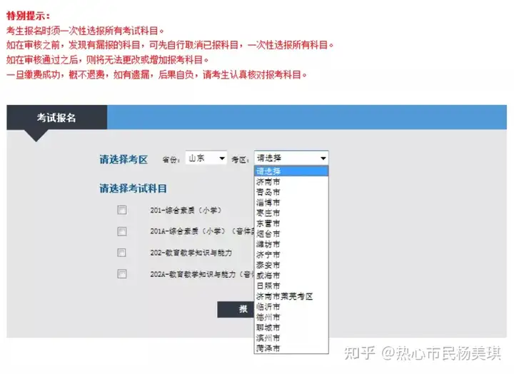 ②选择考区及科目:根据个人情况选择考区及想要报考的科目。还没有选好考哪科的小伙伴可以看我之前的一篇文章,详细教你如何选学科!