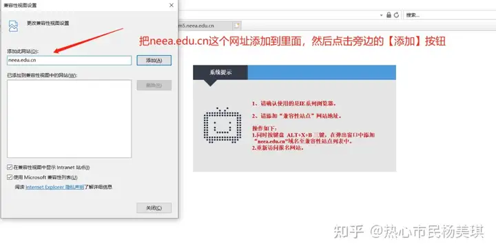 第五步:然后在弹出窗口中添加http://neea.edu.cn