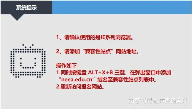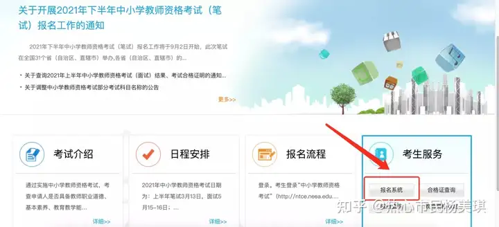登录报名网址:http://ntce.neea.edu.cn(中小学教师资格考试网)点击页面右下角的“报名系统”(注意:使用电脑报名,使用IE浏览器)