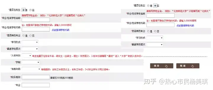 注意:“是否在校生” 在校生选择“是”,非在校生选择“否”然后再填写下面的信息即可。