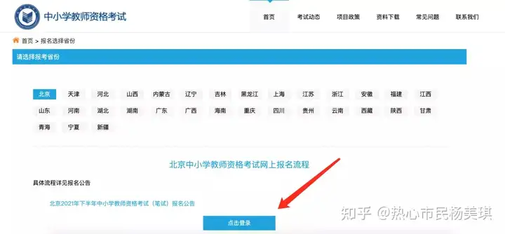 选好考区后,下方会出现当地的考试公告,建议大家仔细阅读。确认报名起止日期、学历要求、属地管理要求、报名方式、审核方式、缴费截止日期等信息,再选择“点击登录”