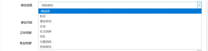 不带*的不是必填项,单位性质确认不了就选其他单位。