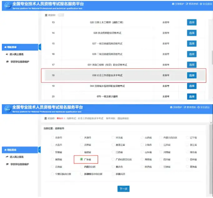 这次报名,以【广东省】报名为例。因是全国统一考试,适用于全国各省市的社工考试网上报名。