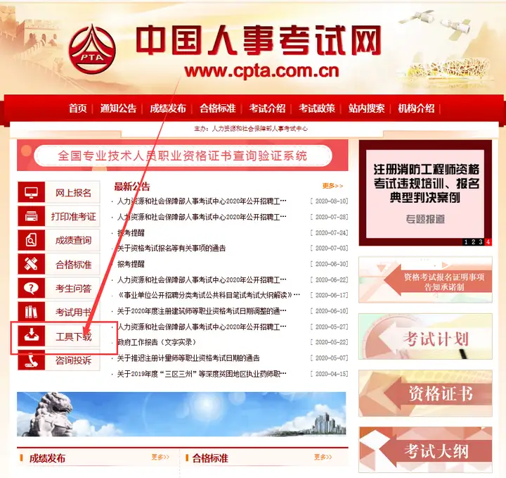 1.第一步,登录中国人事考试网官网,左侧导航栏中有一个【工具下载】。