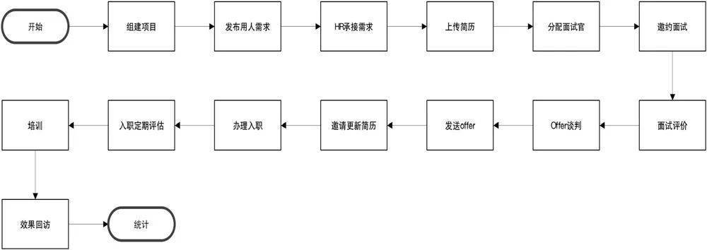 HR获取上传简历,简历信息关联招聘需求,HR对简历的进展阶段进行管理,并分配面试官。