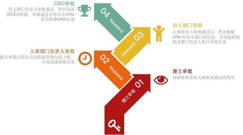 HR创建offer审批并提交,经3级审批通过后可生成在offer列表。同时,可以根据不同的岗位发送不同的offer内容,仅允许发送通过审批的offer,发送后记录发送次数。