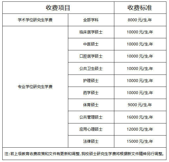 (三)根据《关于继续执行我省研究生教育收费政策及有关问题的通知》(川发改价格[2019]357号)文件规定,我校硕士研究生学费执行如下: