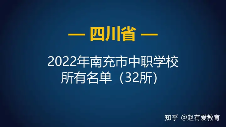 2022年南充市公办中职学校名单(17所)2022年南充市民办中职学校名单(15所)下面一起看看,详细的南充中职学校名单~