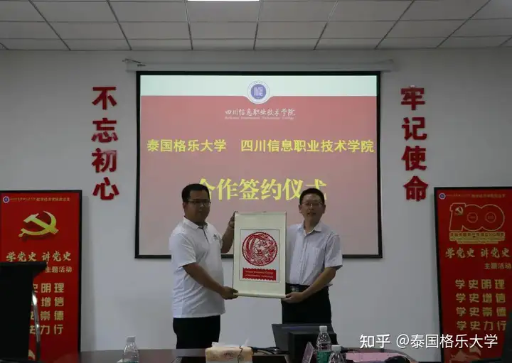 四川信息职业技术学校韩鹏副校长代表致欢迎词并表示,国际化办学已列入学校规划重点推进项目,四川信息职业技术学校有招收东盟国家留学生的经验,未来依托与格乐大学的合作将广大中泰学子真正做到“引进来,送出去。”希望通过两校间的交流合作实现资源共享、优势互补,形成两校间独特而又鲜明的国际化办学特色。