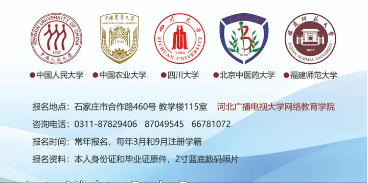 上面这个是河北开放大学,省内所有可报名的院校和地区,具体的专业、收费等细则要联系该院校负责招生的老师(内含联系方式)