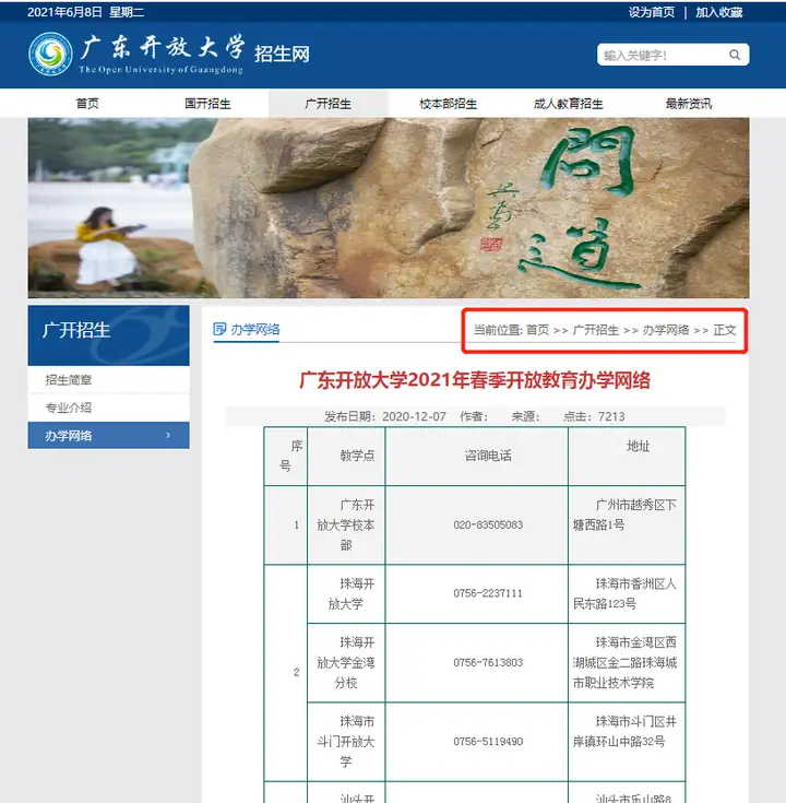 4、各地区的开放大学招生简章,大部分地区是可以通过地区的官网,找到具体到县级开放大学(广播电视大学)的招生简章,也可以查询到地址和联系方式,如下图