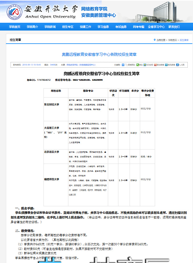 上为上海开放大学的招生简章,我打不开,上海的知友先试一下