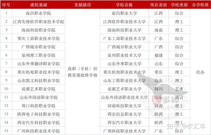 在这样的背景下,2019 年,国务院印发《国家职业教育改革实施方案》明确提出「开展本科层次职业教育试点」,教育部正式批准首批本科层次职业教育试点学校。南昌职业学校等 15 所学校由「职业学校」更名为「职业大学」,升级为本科院校。首批试点学校主要集中在南方省份,均为民办学校。