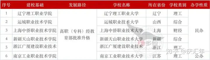 2020 年,教育部正式批准第二批本科职业教育试点高校更名结果,辽宁理工职业学校等 6 所学校升级为本科院校,其中 5 所为民办学校,1 所为公办学校。