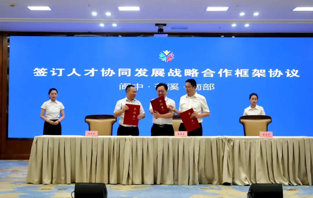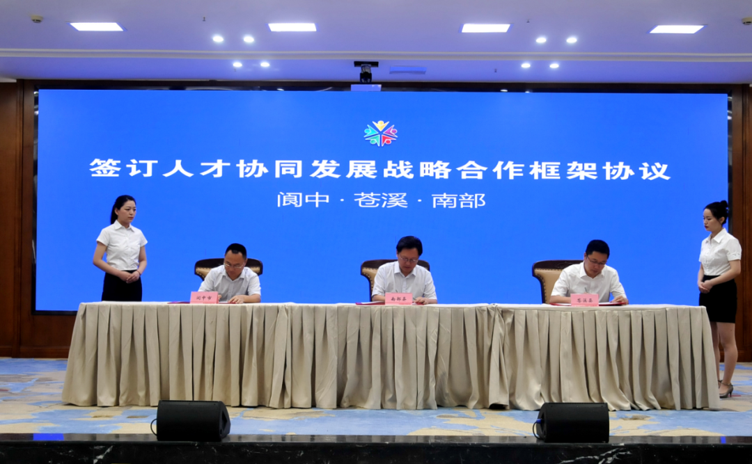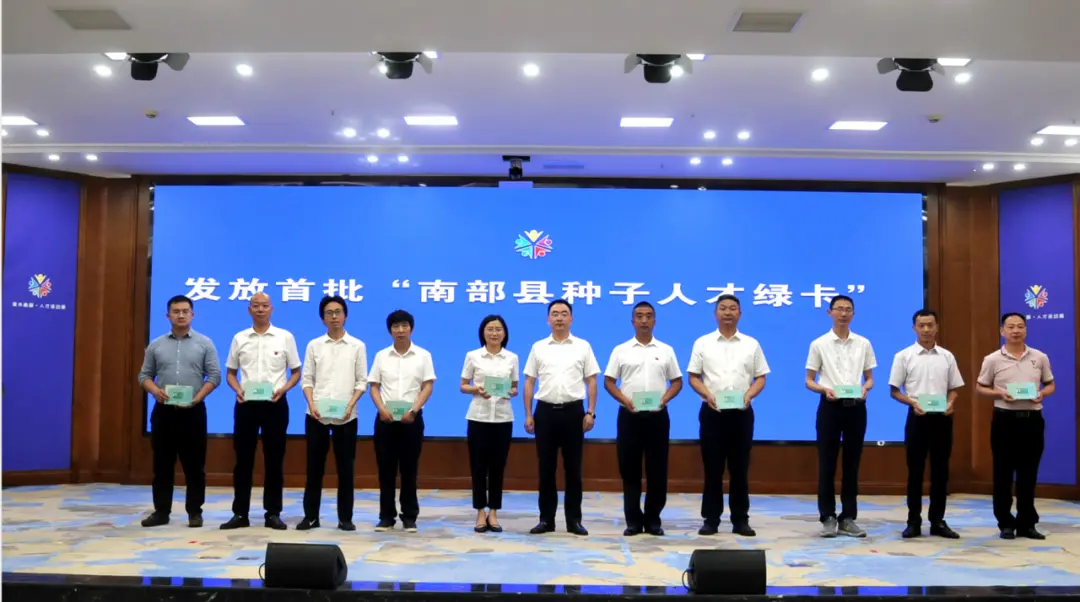 仪式上,“阆南苍”三地党委组织部负责人一同登台共同签订了人才协同发展战略合作框架协议,协议明确了人才政策协同、资源共享、平台共建、市场相同、活动联办等主要战略目标。为南部县首批“亲水南部人才种子工程”培养对象发放发放了证书兑现了资助资金,为符合条件的高层次人才发放了首批“种子人才绿卡”。南部、阆中、苍溪三地党委组织部负责人和优秀人才代表共同启动了“人才超市·智汇南部”网络服务平台。