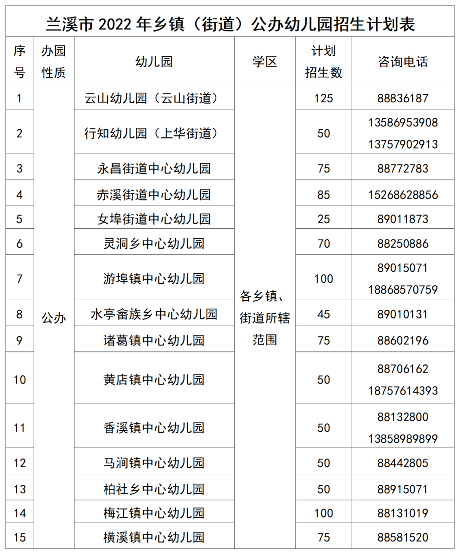 兰溪市教育局关于印发《2022年兰溪市幼儿园招生工 作实施方案》的通知