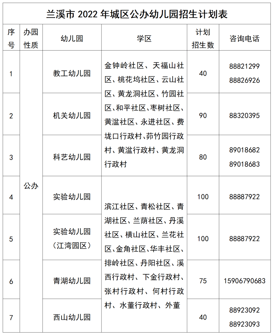 昨天,兰溪市教育局公布2022年幼儿园招生工作实施方案。今年,全市公办幼儿园计划招生1550名,其中,城区7所幼儿园招生525名,乡镇(街道)15所幼儿园招生1025名。