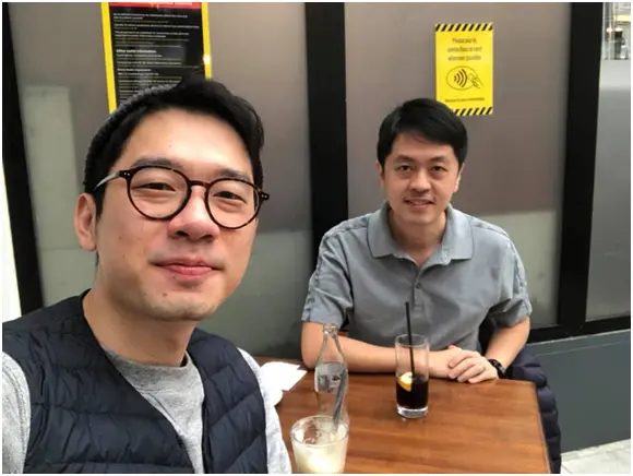 潜逃英国的罗冠聪与许智峰12月11日碰头聚会。图自罗冠聪脸书