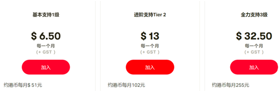此前黄之锋、罗冠聪、周庭等多个乱港分子都开了Patreon。同样是对会员设置不同的充值标准,根据每月订阅费用不同可“解锁”他们发布的不同内容。例如黄之锋的充值会员费分为每月10美元、50美元、150美元、1000美元四个等级。