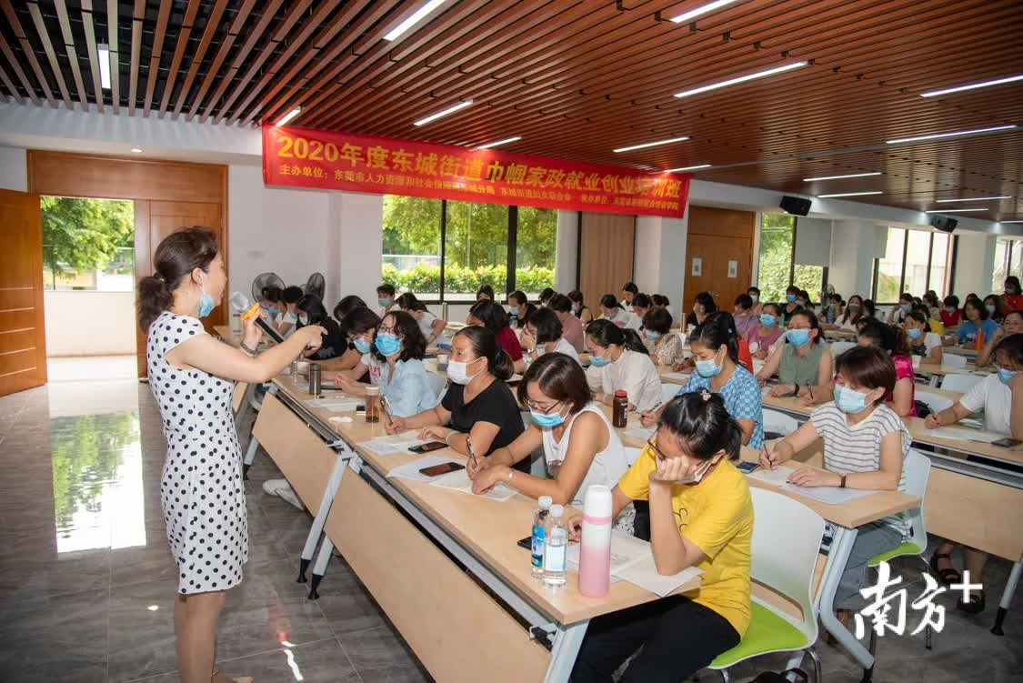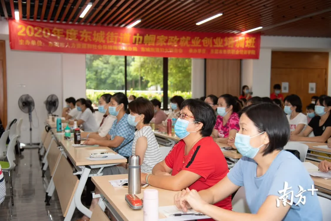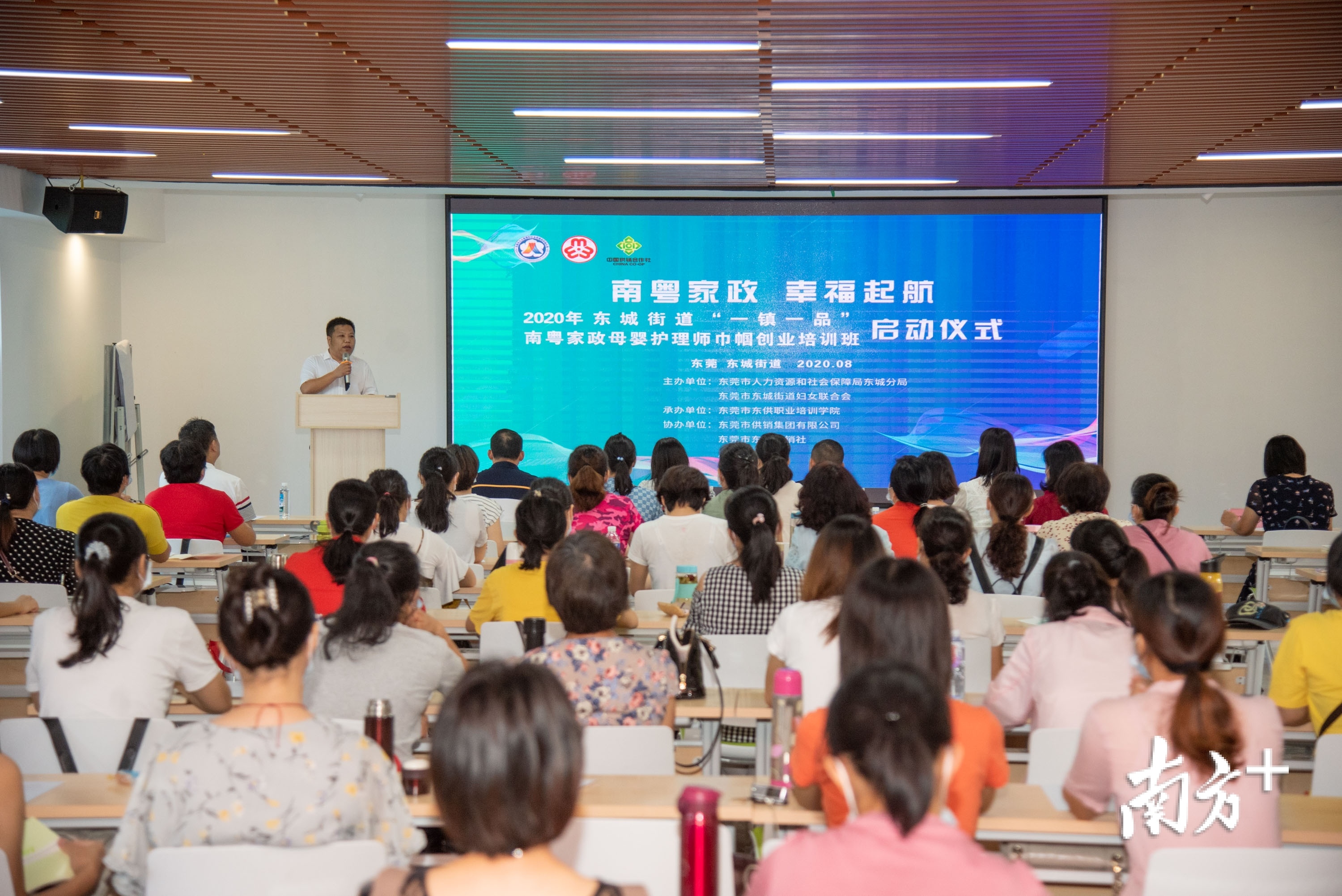 “在座的姐妹们有和我一样是对育婴感兴趣的,有的是想通过培训获得一份稳定的工作的,希望我们都能够学有所成……”8月1日,在东莞市东供职业培训学校(下简称“东供学校”)的培训教室里,学员李时方在开班仪式上分享感受母婴护理师。这是2020年东城街道“一镇一品”、南粤家政母婴护理巾帼就业创业培训班的一幕。