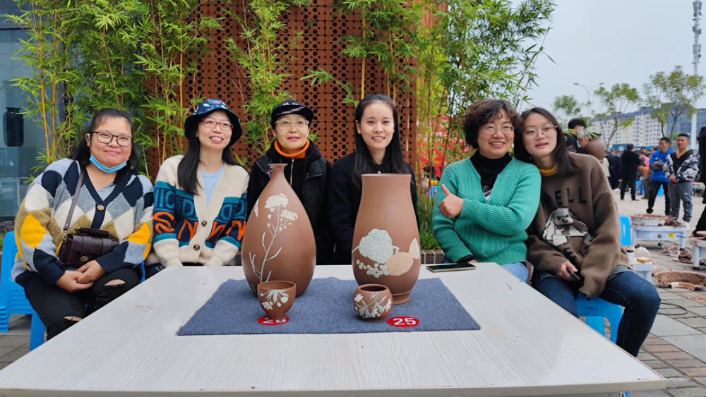 根据规则,选手们要在一个小时的时间里,完成3件不同样的整体陶艺作品,随着时间推移,在参赛选手娴熟的手法下,花瓶、花盆、泡菜坛、酒瓶等土陶制品一一亮相,摆满了展示区。