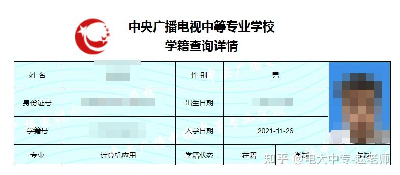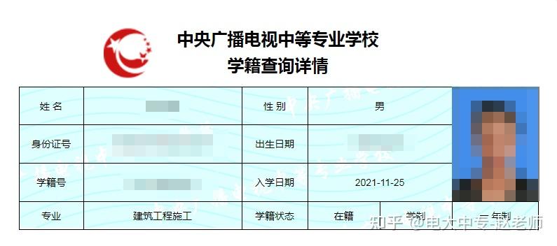 中央广播电视中等专业学校-学籍查询系统