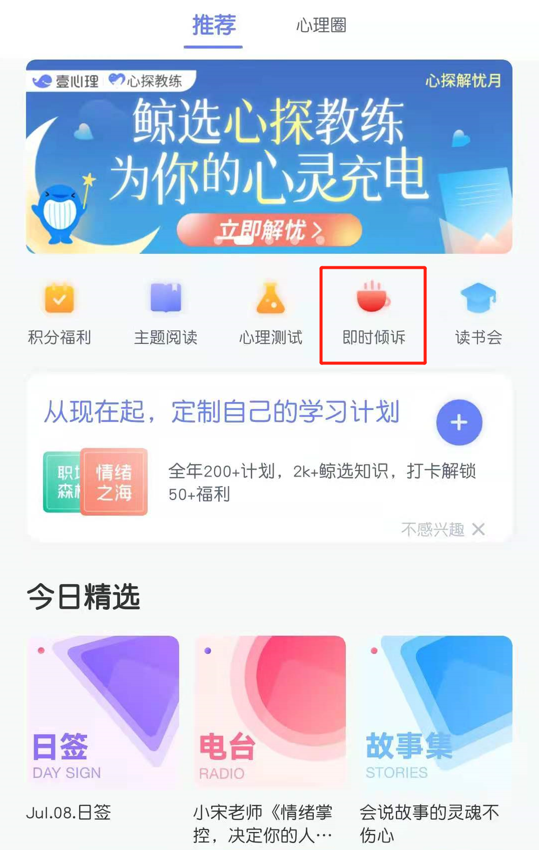 倾听师培训结束后,通过考核,你就能申请入驻壹心理APP“即时倾诉”栏目,以专业心理倾听师的身份接单。