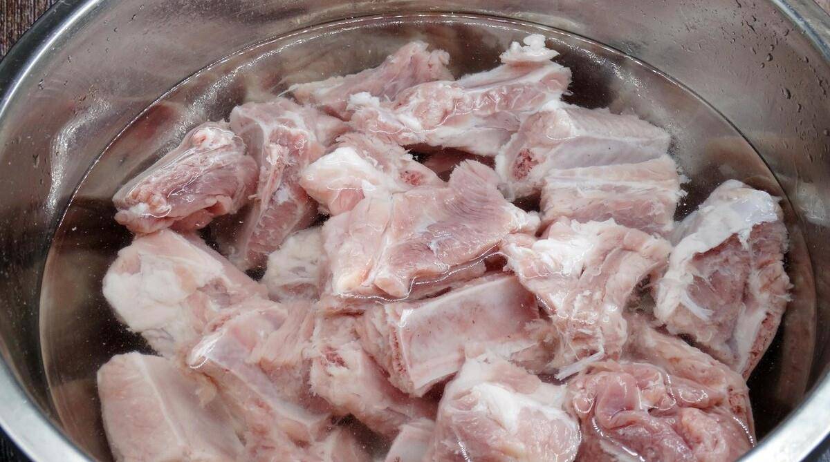 不管是猪肉、排骨,还是羊肉、牛肉,买回来先不要着急下锅炖,也不要着急焯水,而是需要浸泡。