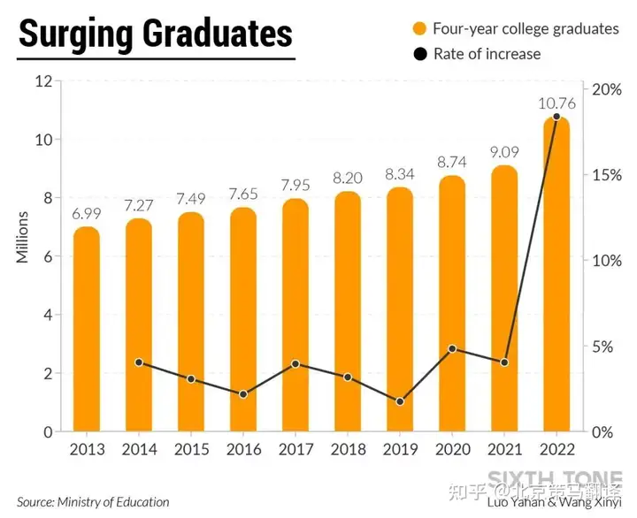 根据教育部数据显示,2022年全国高校毕业生人数达到1076万人,创历史新高。2022年被称为“史上最难就业季”。