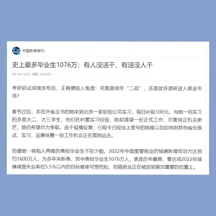 再加上新冠疫情的阴霾、就业市场用人需求的不确定性,在多重因素的叠加影响下,今年的就业季形势格外严峻。
