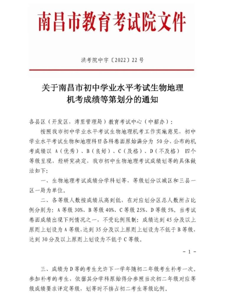 注意:本届初三考生生物和地理机考成绩均需达到 C 等 以上(含 C 等)才能够在 2023 年中考填报普通高中学校志愿。2022年及以前毕业的历届生2023年中考报名后再行报名参加明年随初二年级的生物地理机考。