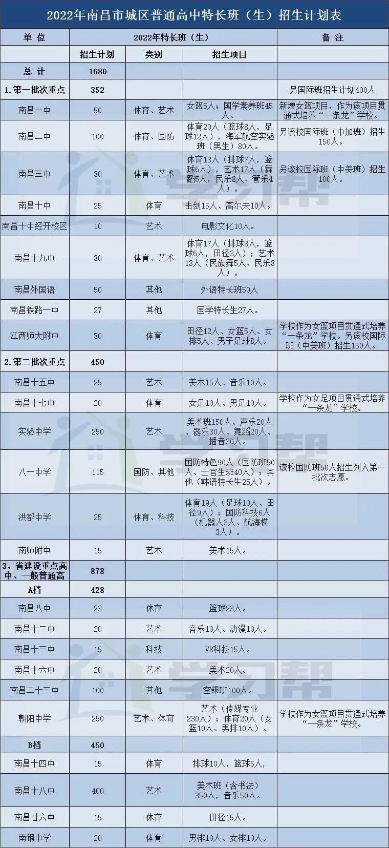 以上都是一些比较常见的特长专业,在南昌各个学校都有所涉及。但除此之外,还有一些其它特长生(班),例如南昌二中的海航班、南昌市外国语学校的外语特长班等。