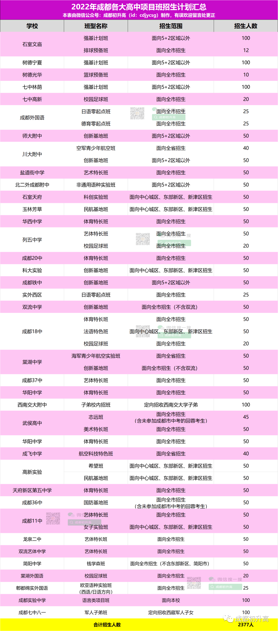 4.华阳中学、华西中学、列五中学、武侯高中、成都20中的艺体特长班、体育特长班招生范围为面向全市;冯老师建议各位在报名的时候,一定要注意看看学校的招生范围是面向全省还是全市还是区外。