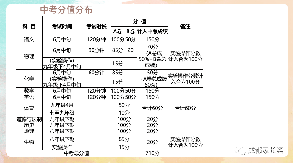 中考总分值710分!今年在分值上最大的变化就是体考多了10分以及取消的英语的单考(单考是指往年外国语类学校的单独试题)。