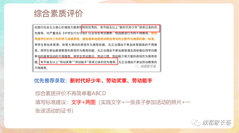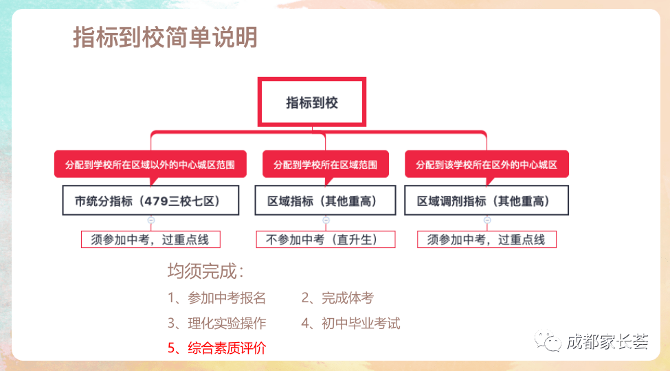 但是要注意的是, 初三上期的期末考试,也就是一诊考试,也是需要大家重视。另外也要重视综合素质评价,因为这个遴选结果已经和入学挂钩了。
