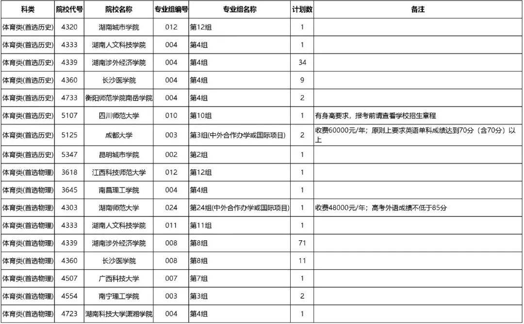 2、湖南省2022年普通高校招生本科批(体育类)第一次征集志愿国家任务计划