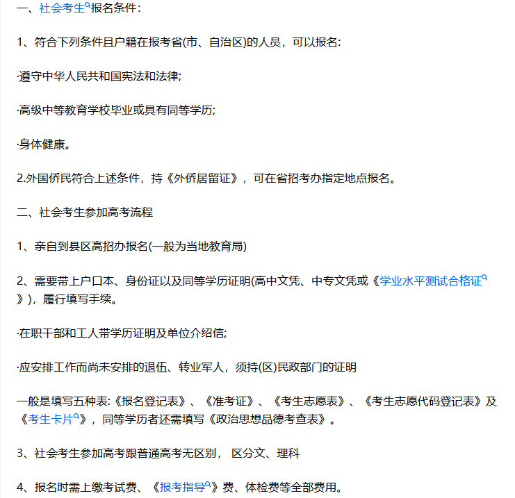 符合下列条件的人员,可以申请报名: (1)遵守中华人民共和国宪法 和法律; (2) 高级中等教育学校毕业(含应届生 )或具有同等学力; (3)身体状况符合相关要求。 2.下列人员不得报名: (1)具有高等学历教育资格的高校的在校生,或已被高校录取并保留入学资格的学生; (2)高级中等教育学校非应届毕业的在校生; (3)在高级中等教育阶段非应届毕业年份以弄虚作假手段报名并违规参加普通高校招生考试(包括全国统考、省级统考和高校单独组织的招生考试,以下简称高校招生考试)的应届毕业生; (4)因违反国家教育考试规定,被给予暂停参加高校招生考试处理且在停考期内的人员; (5)因触犯刑法已被有关部门采取强制措施或正在服刑者。这里的重点就是高级中等教学学校毕业或具有同等学力