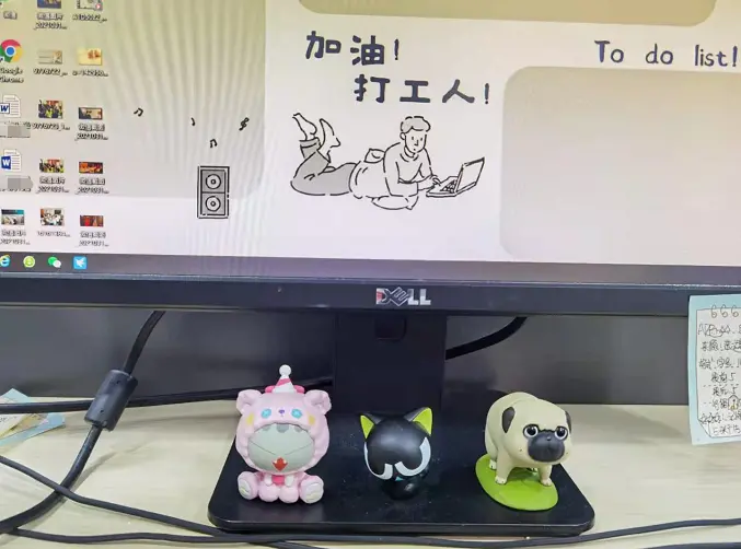 王小麦的电脑桌面上,写着“加油打工人”的鼓励。/受访者供图