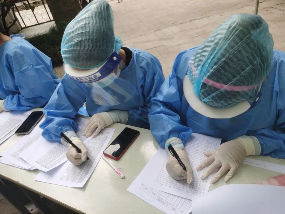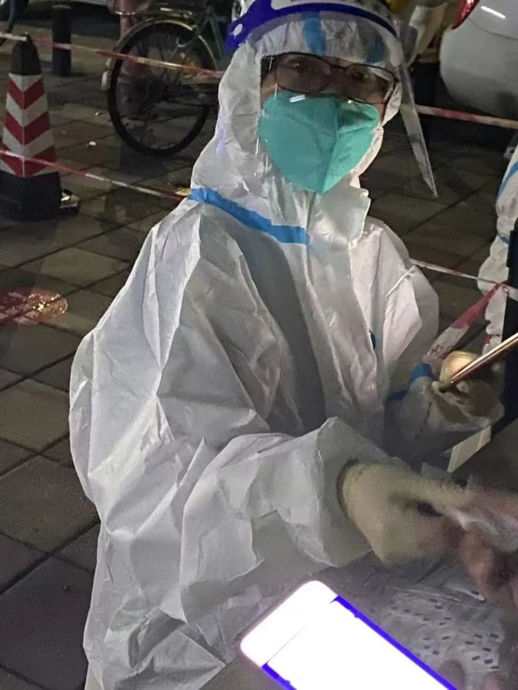 学校党员干部主动参加社区防疫工作,担任核酸检测志愿者。