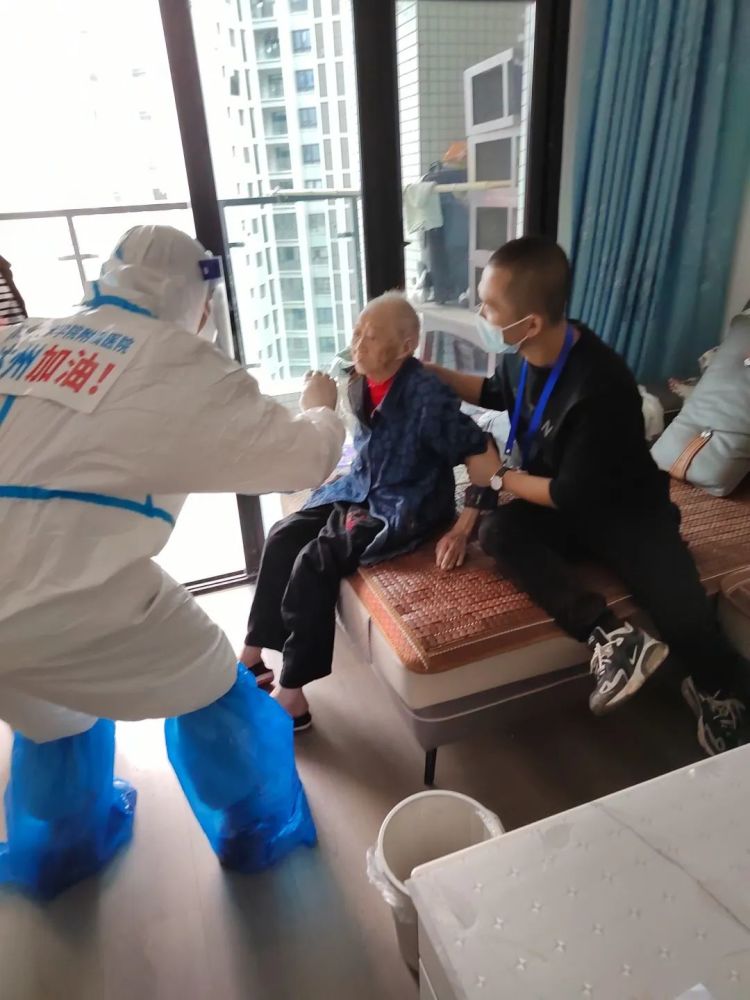 学校党员突击队和志愿者深入一线,在附属医院搭建便民核酸采集点,为辖区居民开展排查、核酸检测工作,并为辖区行动不便的老人上门做核酸。