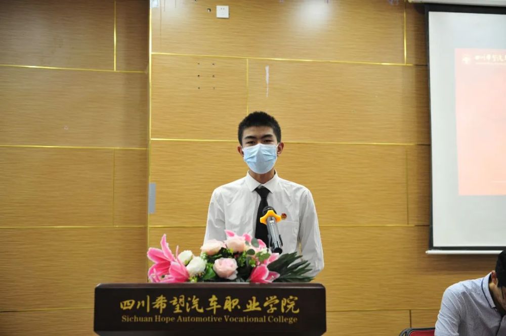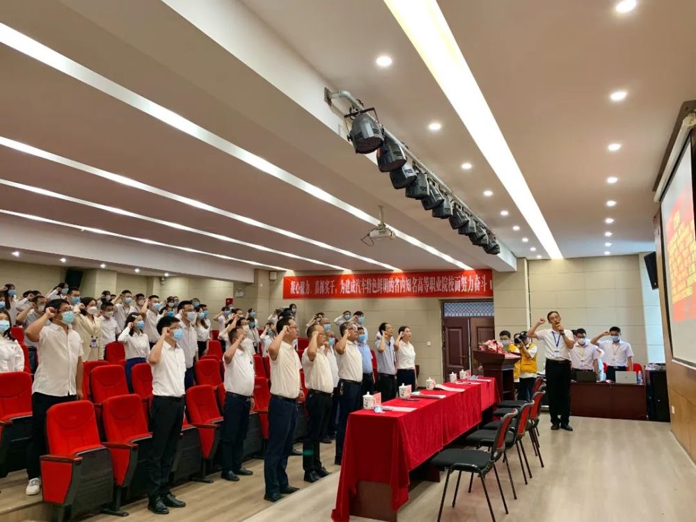 汽车与交通系新能源专业张大爽同学代表全校同学为全体教师献词。师德标兵李宏老师带领全体教师宣誓。