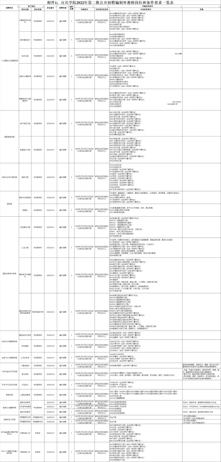 附件:1.宜宾学校2022年第二批公开招聘编制外教师岗位和条件要求一览表