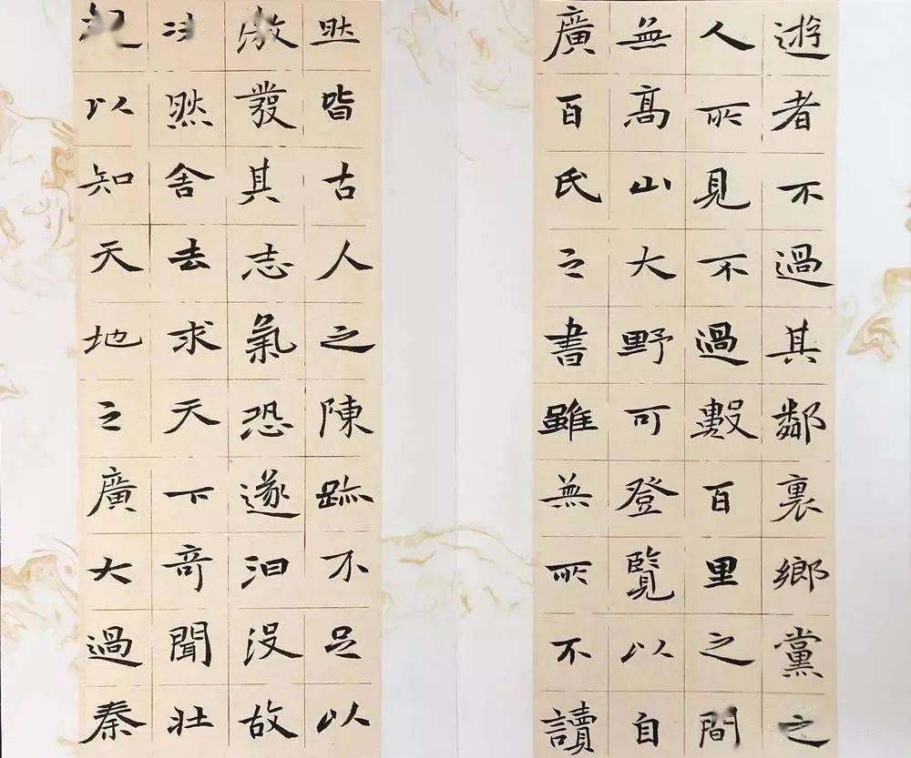 我虽自七岁孩童时期开始习书,但后来断断续续未能坚持,直到2014年开始重新拿起毛笔,自行练习,可闭门造车,虽遍临各大碑帖,却只得其形,不得其法。苏轼说:“真生行,行生草,真如立,行如行,草如走。未有未能行立而能走者也。”所以我还是决定从楷书专起,从头开始打好坚实的基础。