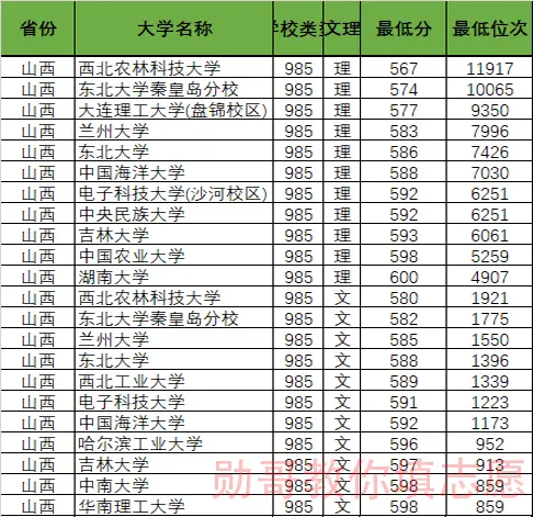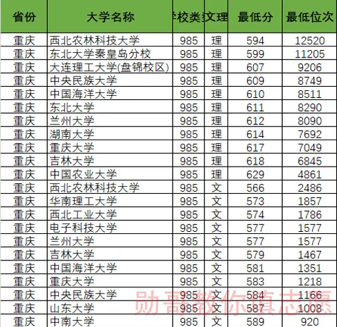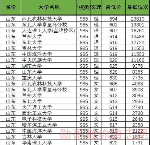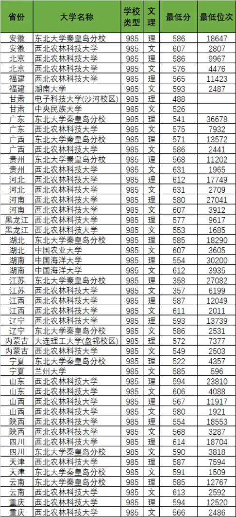 从全国高考的录取数据来看,哪些985大学的录取分数最低?
