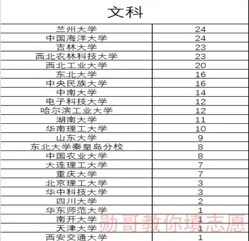 而文科,兰州大学、中国海洋大学在24个省中,均位于985院校录取倒数前十的位置,接下来是吉林大学和西北农林科技大学。