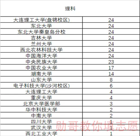 从统计数据来看,理科大连理工大学(盘锦校区)、东北大学、东北大学秦皇岛分校、吉林大学、兰州大学、西北农林科技大学、中国海洋大学在24个省中,均位于985院校录取倒数前十的位置,中央民族大学在23个省市中位于985院校录取倒数前十的位置,中国农业大学为17个省倒数前十,湖南大学在14个省倒数前十。